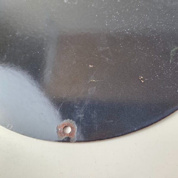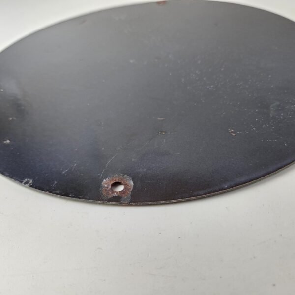 It is a vintage Mountain Dew porcelain sign featuring the iconic cartoon character. If you love retro gas and oil memorabilia, or the classic soda signs, you will appreciate this sign. It measures 12 inches in diameter and is in excellent condition. This sign is sure to make a statement in any space. Whether you’re looking to add to your collection or decorate your garage, this Mountain Dew porcelain sign is the perfect addition. It has vivid colors and gloss and is in great condition.