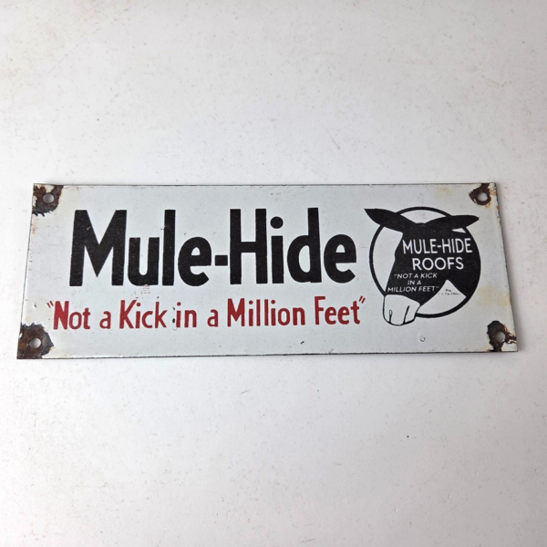 Vintage Mule Hide Roof Porcelain Sign – Auto Gas Service Garage Shop Sign