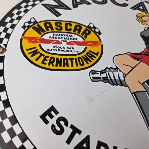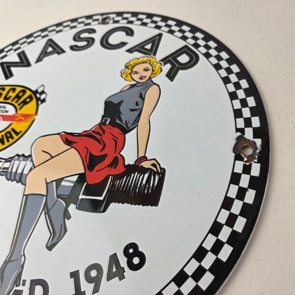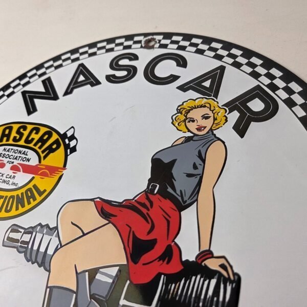 Vintage Nascar Sign – Spark Plug Pin Gas Pump Porcelain Sign