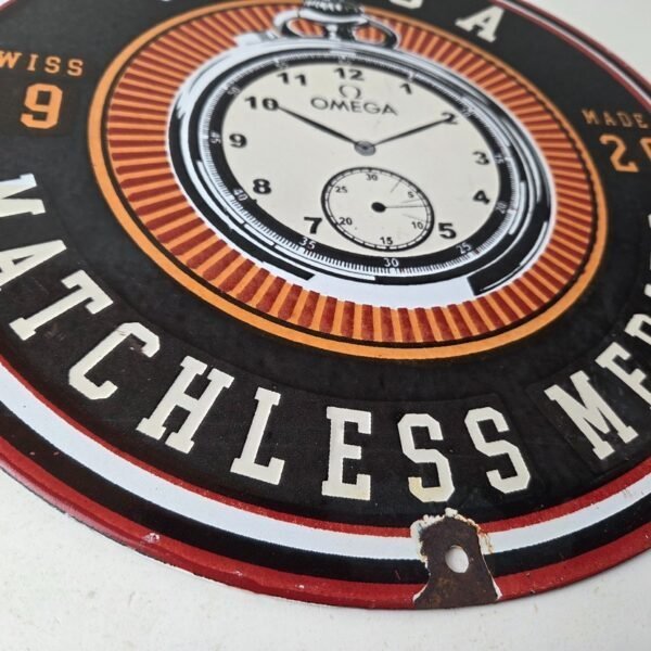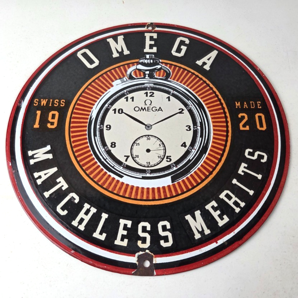 Vintage Omega Watches Sign – Matchless Merits Store Display Gas Porcelain Sign