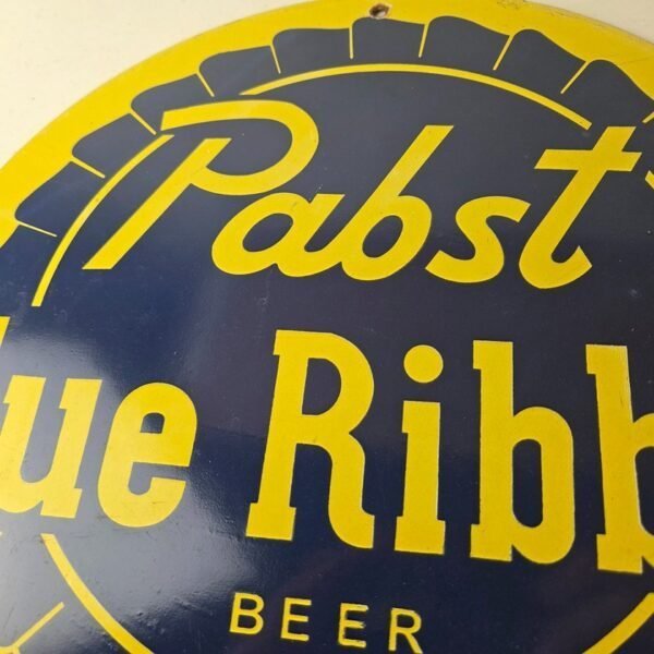 Vintage Pabst Blue Ribbon Sign – Alcohol Beer Brewing Gas Pump Porcelain Sign
