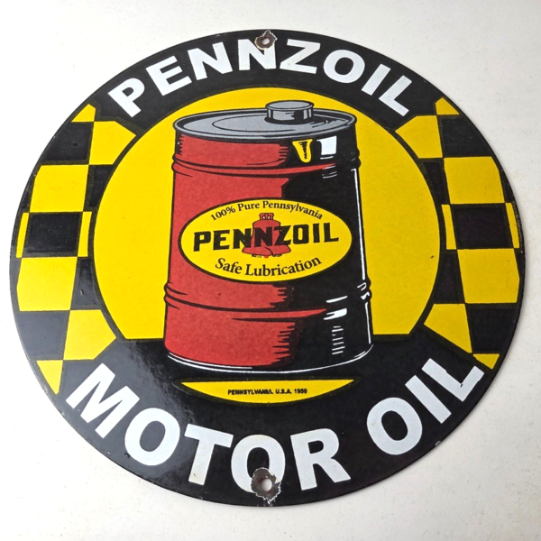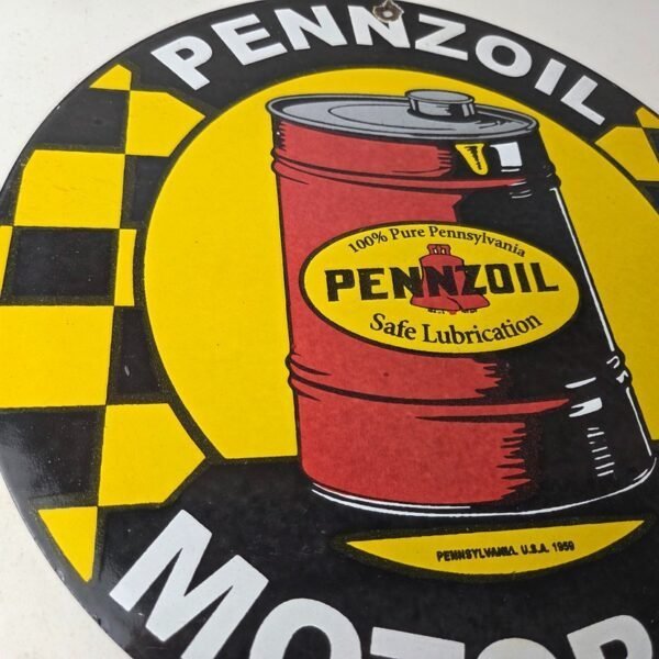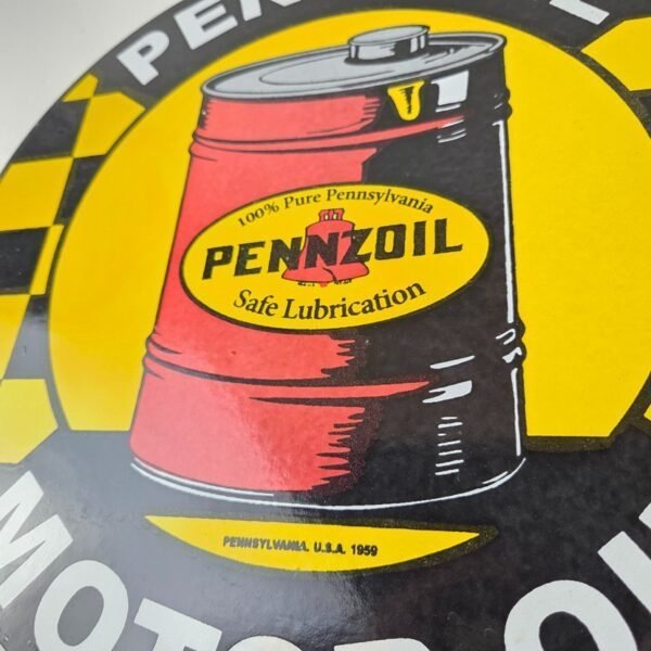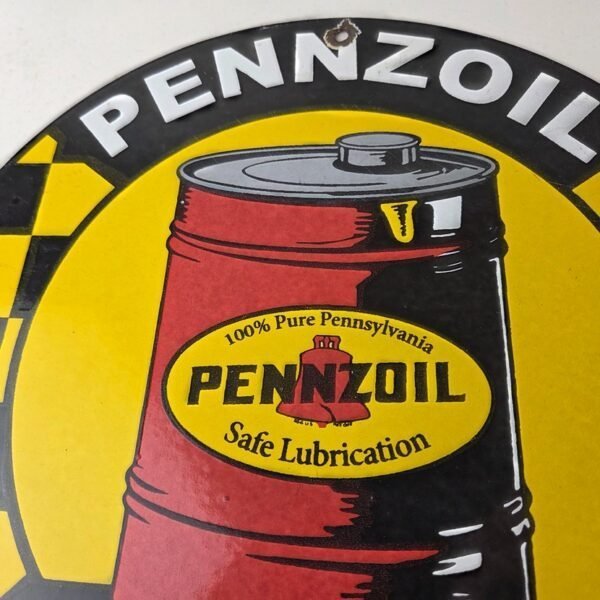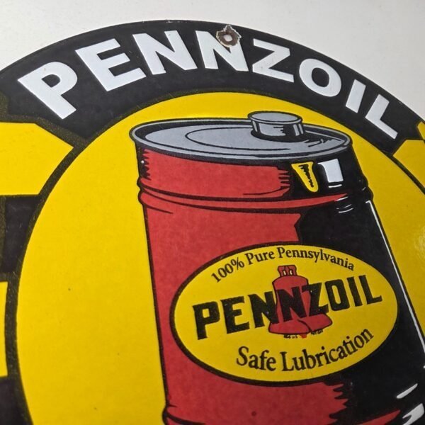 Vintage Pennzoil Porcelain Sign – Motor Oil Drum Can Lubrication Porcelain Sign