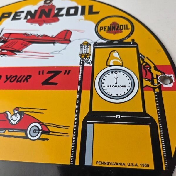 Vintage Pennzoil Sign – Sound Your Z Gas Service Station Pump Porcelain Sign