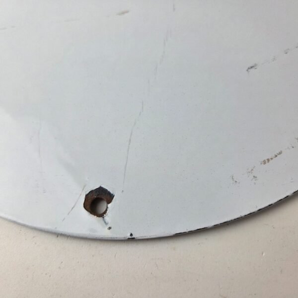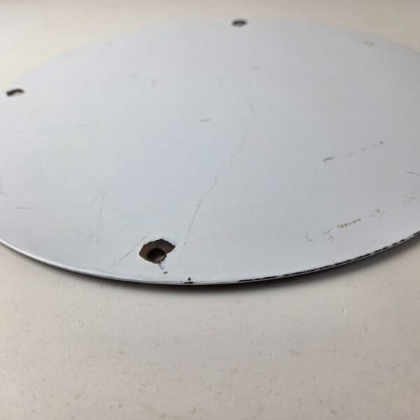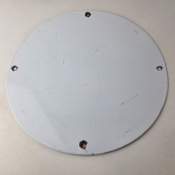 This vintage Pennzoil Motor Oil porcelain sign features the iconic logo of the Pennsylvania bell at the top. This sign has excellent large lettering and porcelain. The sign measures 11 3/4 inches across.