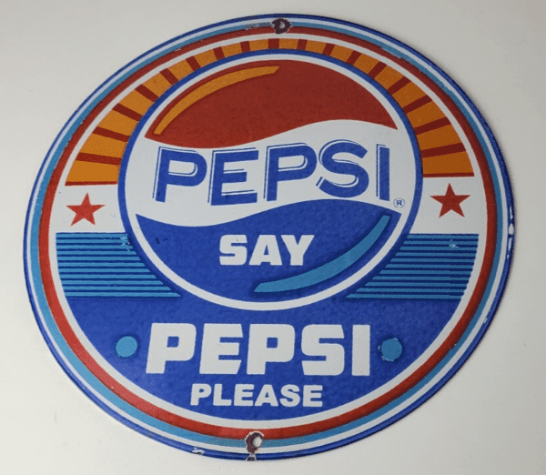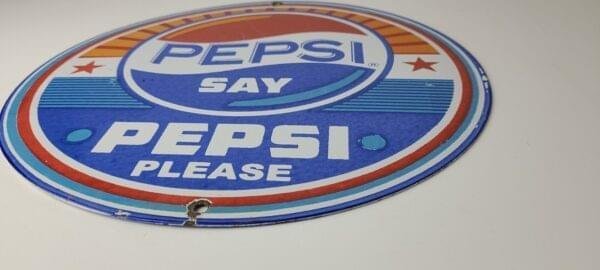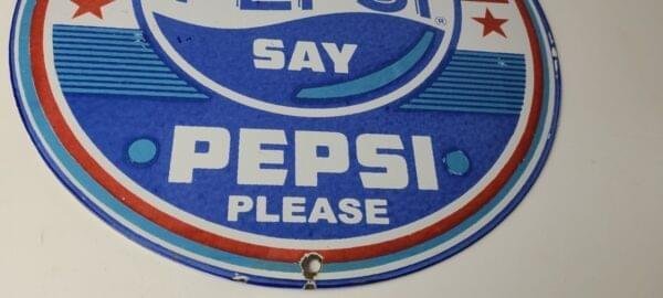 Vintage Pepsi Porcelain Sign – Pepsi Please Advertisement Drink Soda Cola Sign