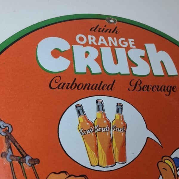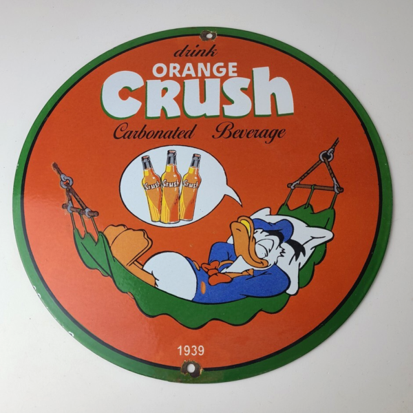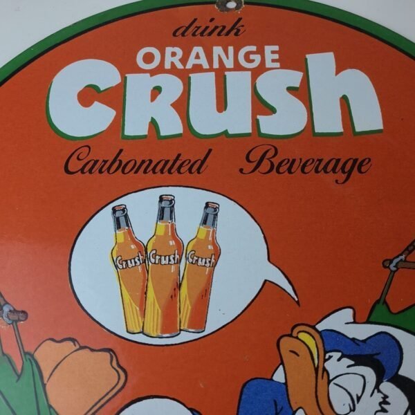 Vintage Porcelain Sign – Orange Crush Beverage Donald Duck Gas Station Sign