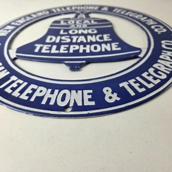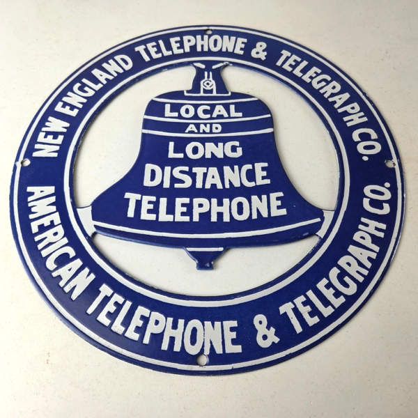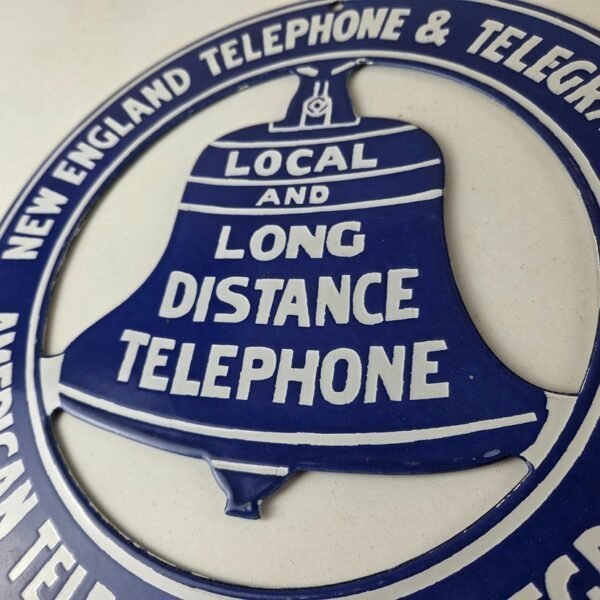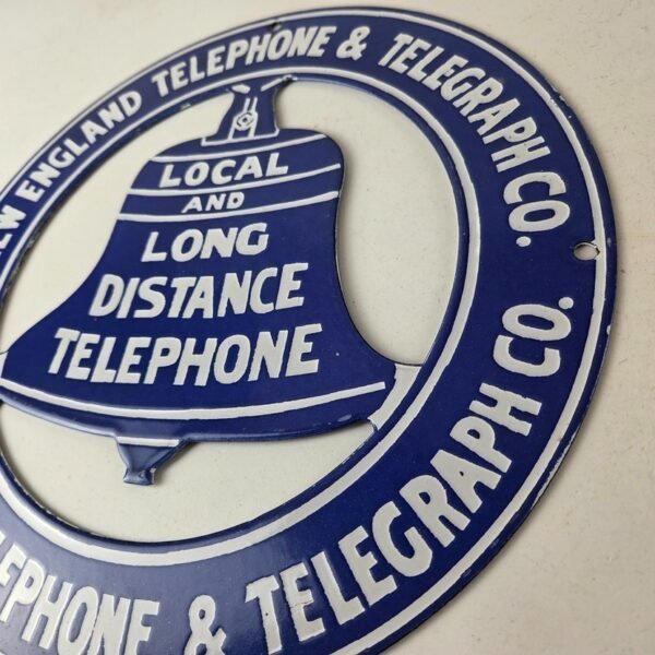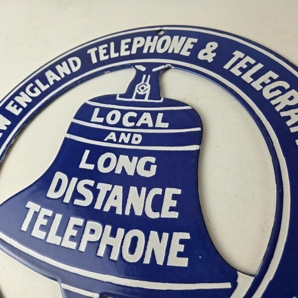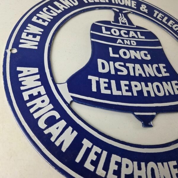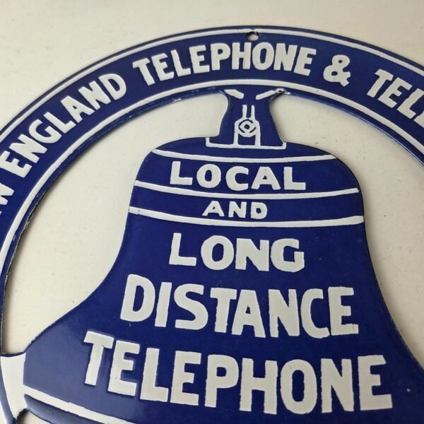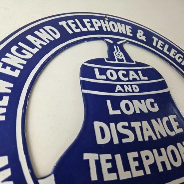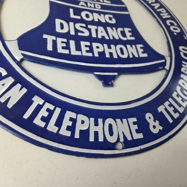 This vintage porcelain sign features a striking blue color with the words “Telephone & Telegraph Co” and “Local and Long Distance Telephone” prominently displayed. Measuring at 12 inches in size, this sign is a great addition to any collection of gas and oil memorabilia. The sign is also ideal for those who enjoy vintage advertising and collectibles. This sign will enhance your man-cave, collection, speakeasy, shop, or garage.