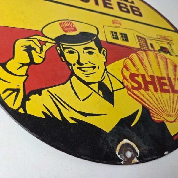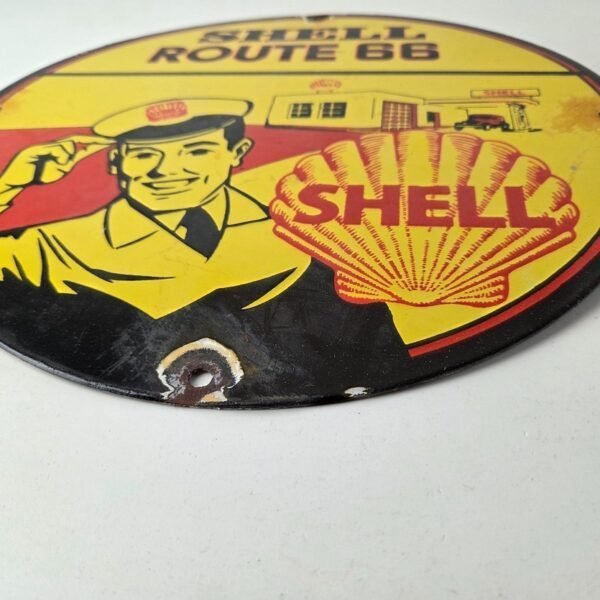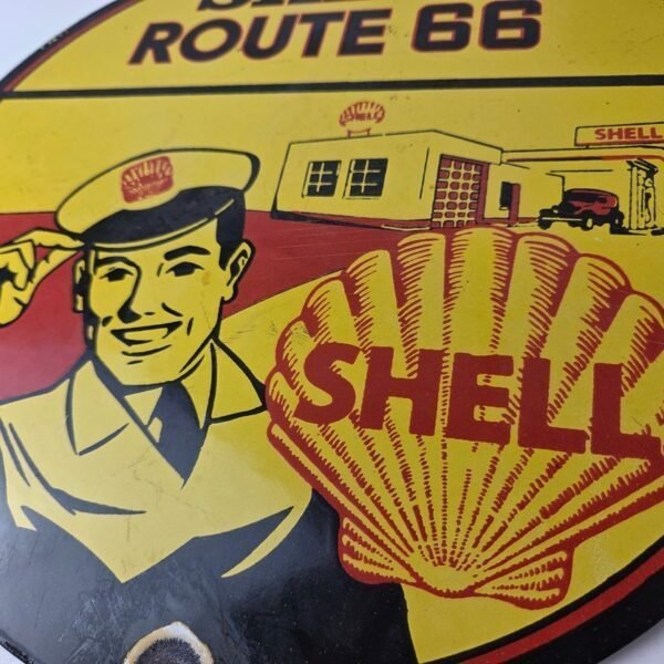 Vintage Shell Gasoline Sign – Route 66 Road Service Station Gas Porcelain Sign