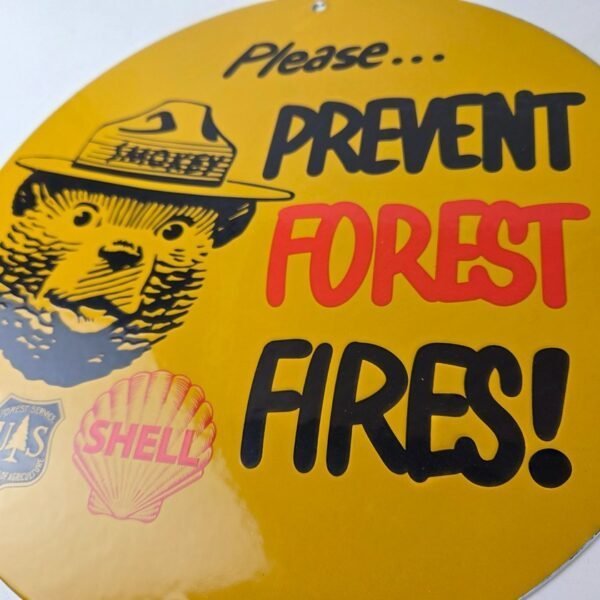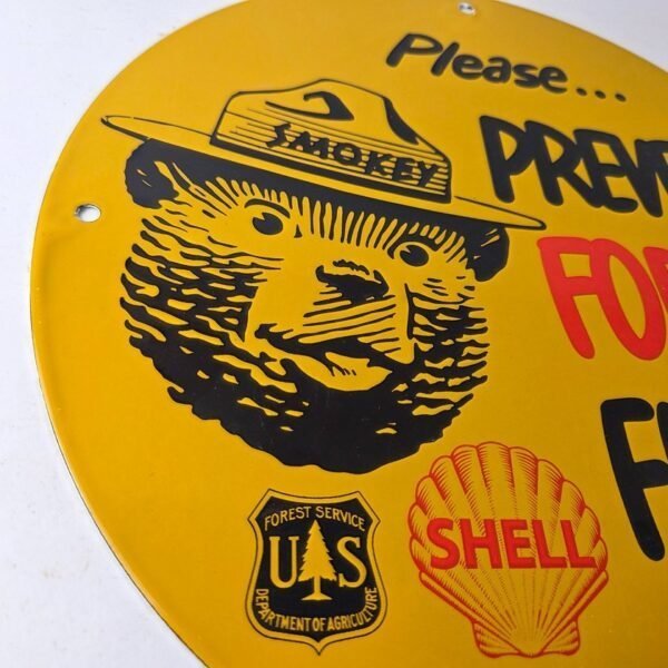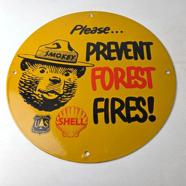 Vintage Shell Gasoline Sign – Smokey Bear Forest Service Gas Porcelain Sign
