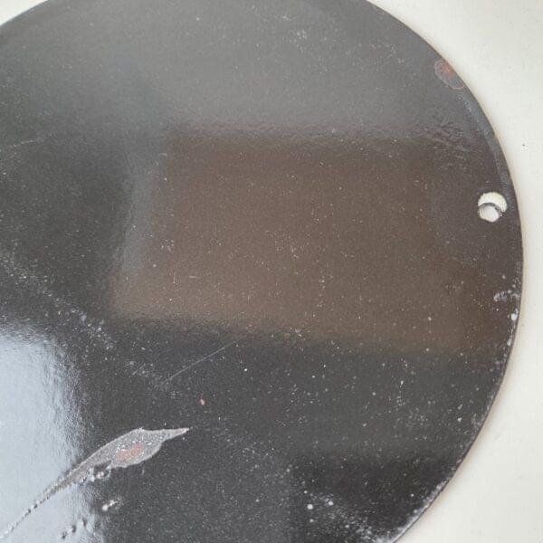 This is a vintage Spiffy porcelain sign featuring the iconic pinup girl graphic on the front. It measures 10 inches in diameter and is in excellent condition. This sign is sure to make a statement in any space. Whether you’re looking to add to your collection or decorate your garage, this Spiffy porcelain sign is the perfect addition. It has vivid colors and gloss and is in great condition.