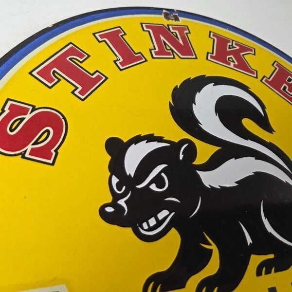 Vintage Stinker Gasoline Sign – Skunk Porcelain Service Station Gas Pump Sign