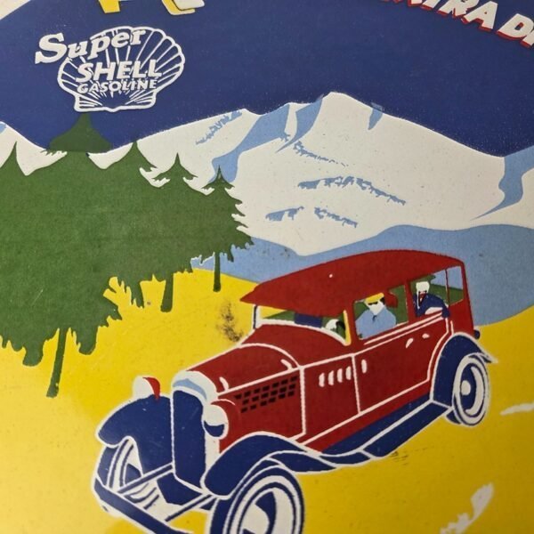 This vintage Super Shell Gasoline porcelain sign features the iconic Shell Gasoline branding and is made of porcelain. The sign measures 11 1/4″ across and features the 400 Extra Dry Super Shell blend and is designed for use on a Shell car pump.