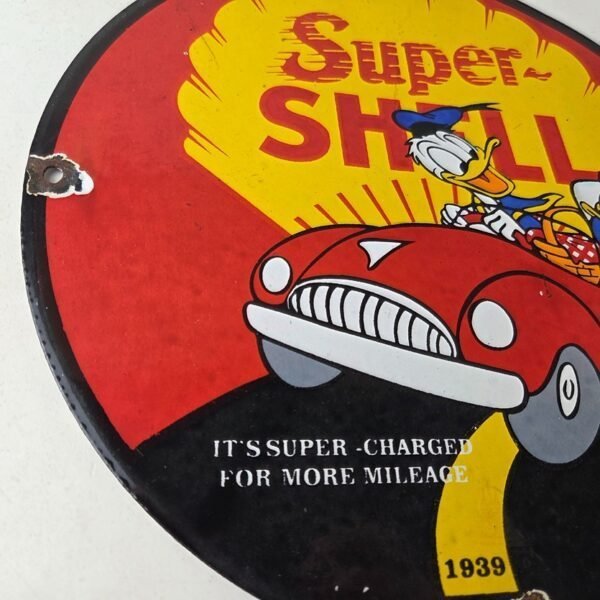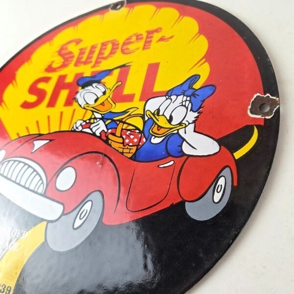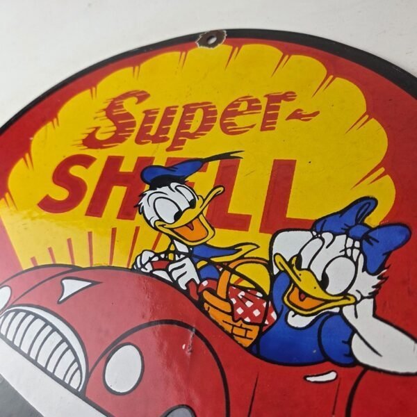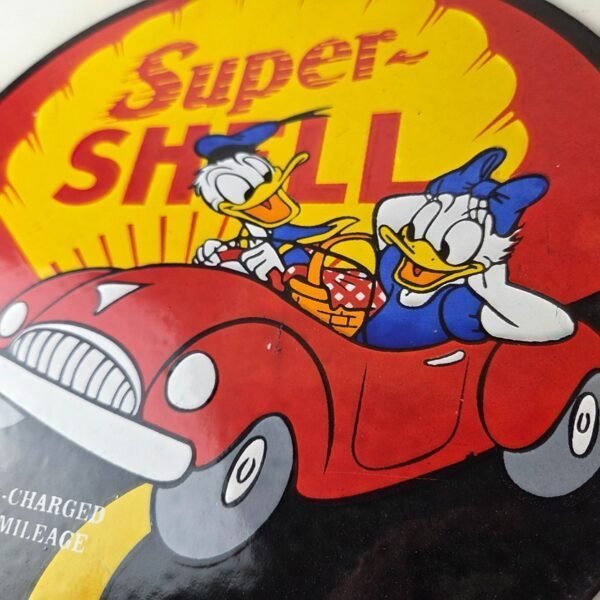 Vintage Super Shell Gasoline Sign – Donald Duck Automobile Gas Oil Pump Sign