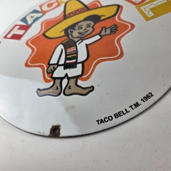 Vintage Taco Bell Sign – Porcelain Restaurant Fast Food Diner Gas Pump Sign
