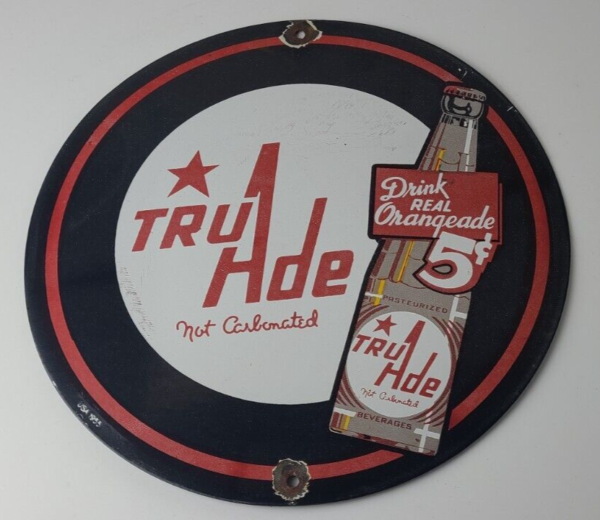 Vintage Tru Ade Sign – Cola Beverage Advertise Soda Bar Gas Pump Porcelain Sign