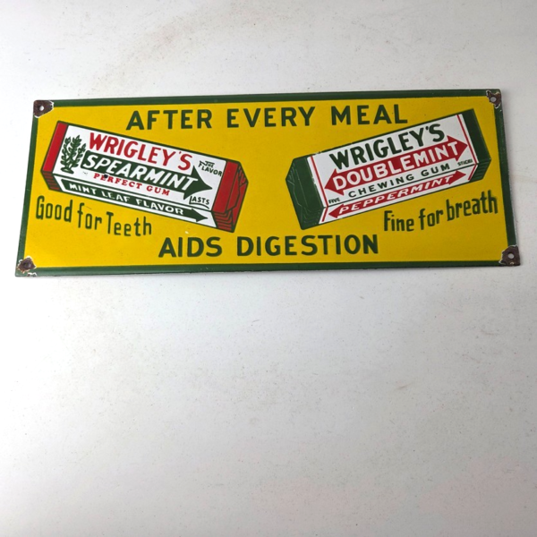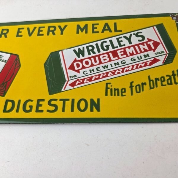 Vintage Wrigley Chewing Gum Sign – Porcelain Spearmint Advertising Gas Pump Sign